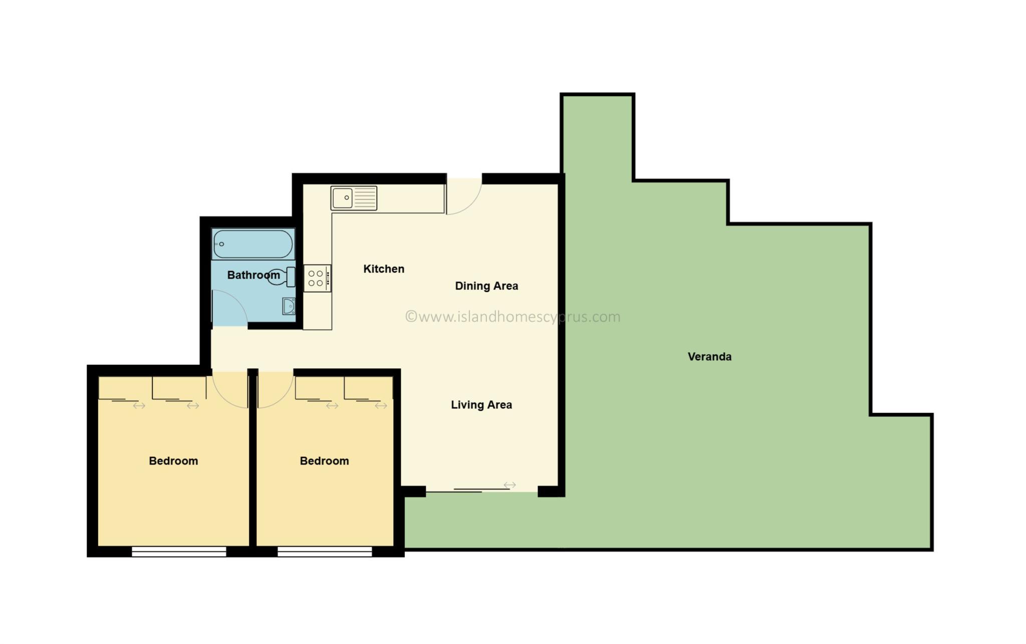 The current owners have beautifully presented this holiday home, making it a cosy retreat after a long day at the beach. From the large open plan space is a short corridor which leads to the bedrooms and bathroom. Both bedrooms are double in size and include built in, floor to ceiling, wardrobes. The bathroom offers a bathtub, over bath shower, WC and sink with large vanity unit. There is no shortage of storage in this property. The real gem of the apartment must be the veranda, with 71m2 of outdoor space offering a host of potential this veranda gives those with young children or pets a great space to use for the family.