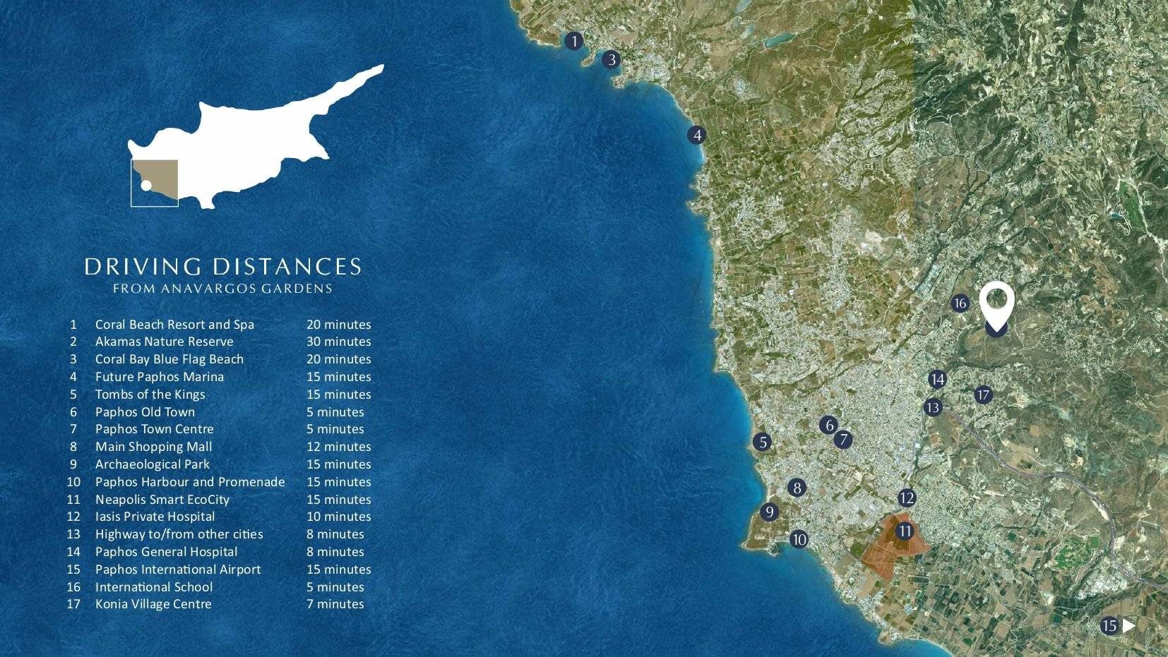 Anavargos Gardens Land Parcel This plot is located in Anavargos , a beautiful Village just 10 minutes' drive to the Paphos Tourist Area and a 5 minute drive to Leptos Kamares Village. These plots are carefully sited so that residents enjoy breathtaking panoramic views of the sea and the Mediterranean countryside.
