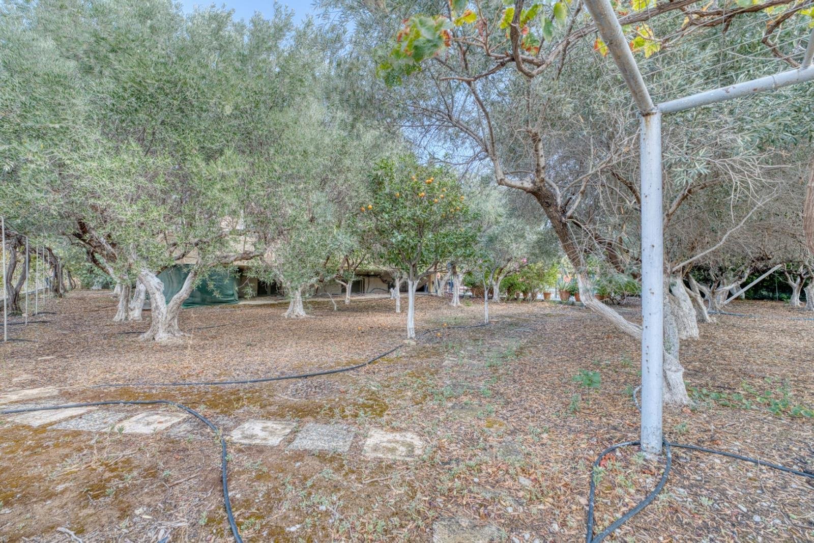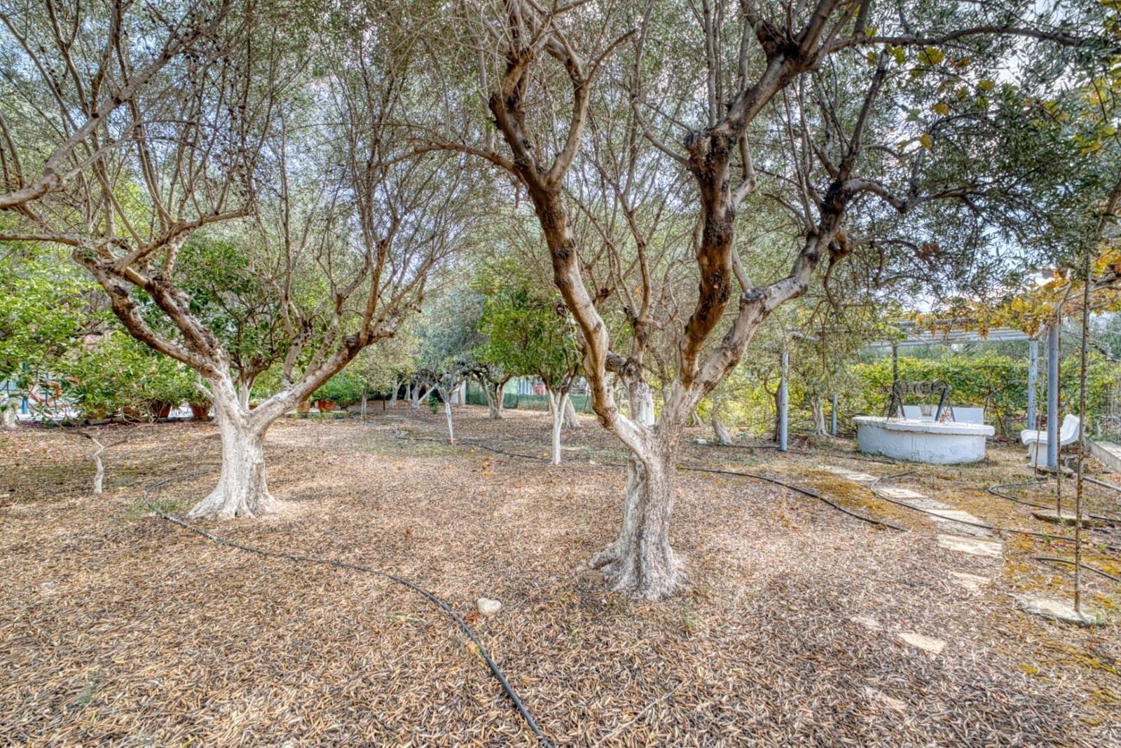 - Mature garden with olive, orange, lemon, and apricot trees