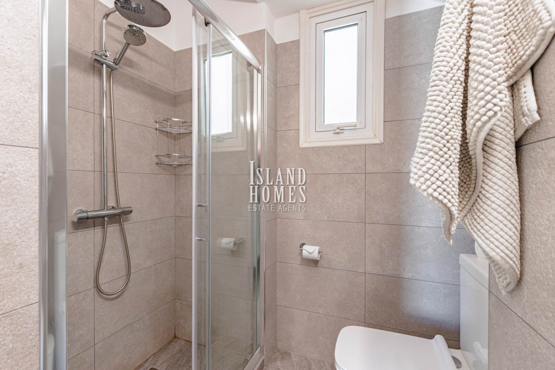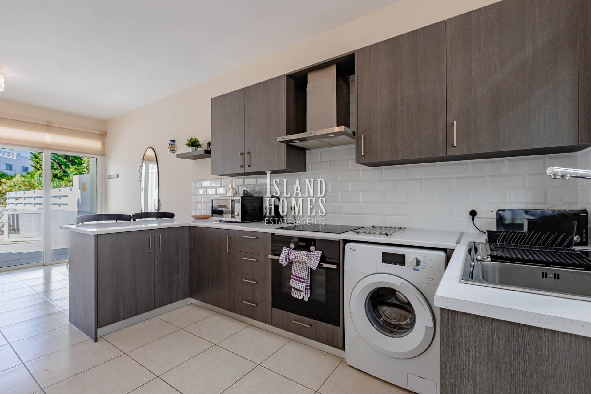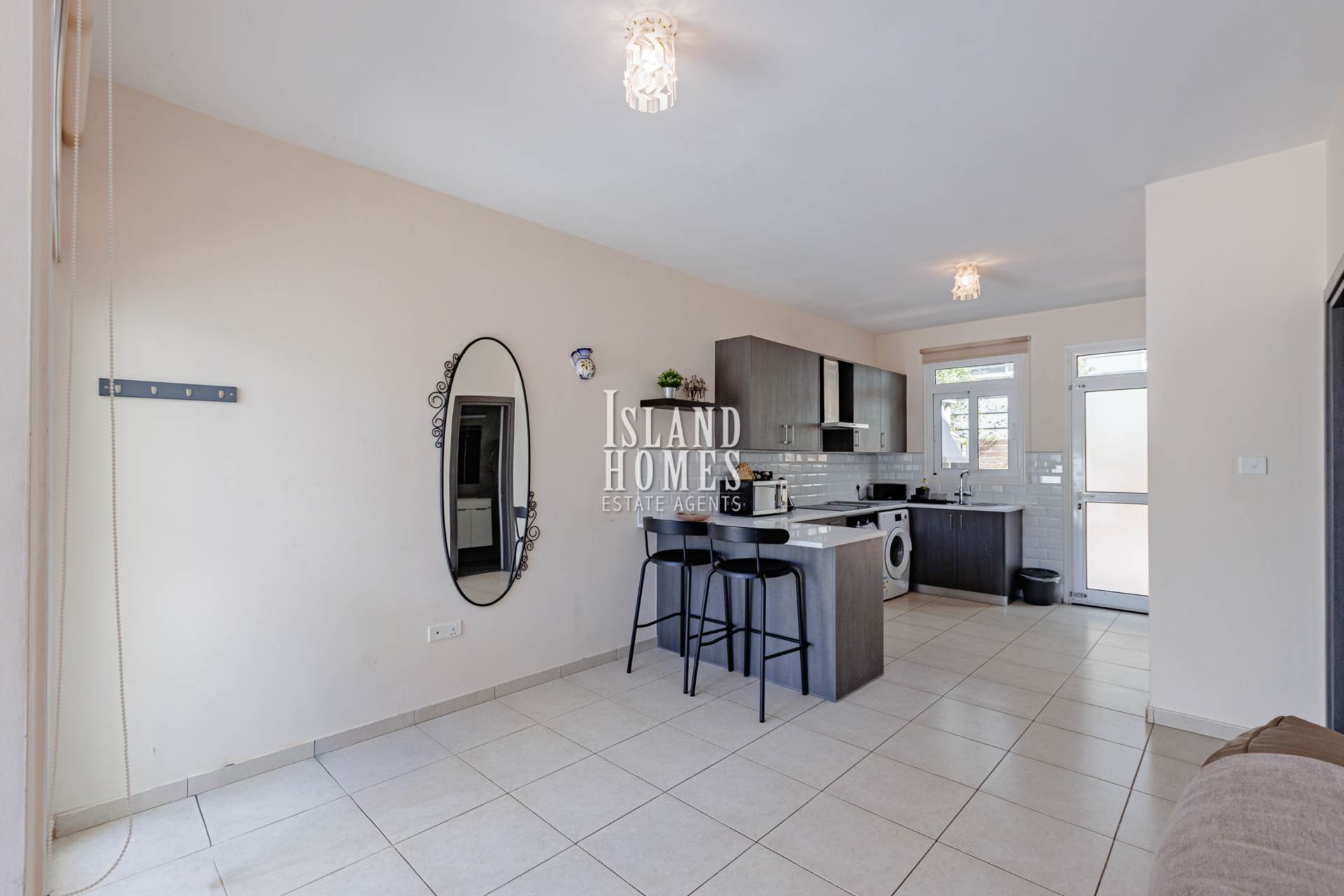 This delightful property is available for sale fully furnished in a fabulous location just 100 meters away from the coastline of Protaras. Upon entering, you are greeted with an open plan layout offering a stunning new kitchen and dining area with functional breakfast bar and ample storage. The living area is slightly off-set and offers a cozy spot to relax with views out to the private swimming pool. There is also a recently renovated bathroom on this level with W/C and walk in shower.