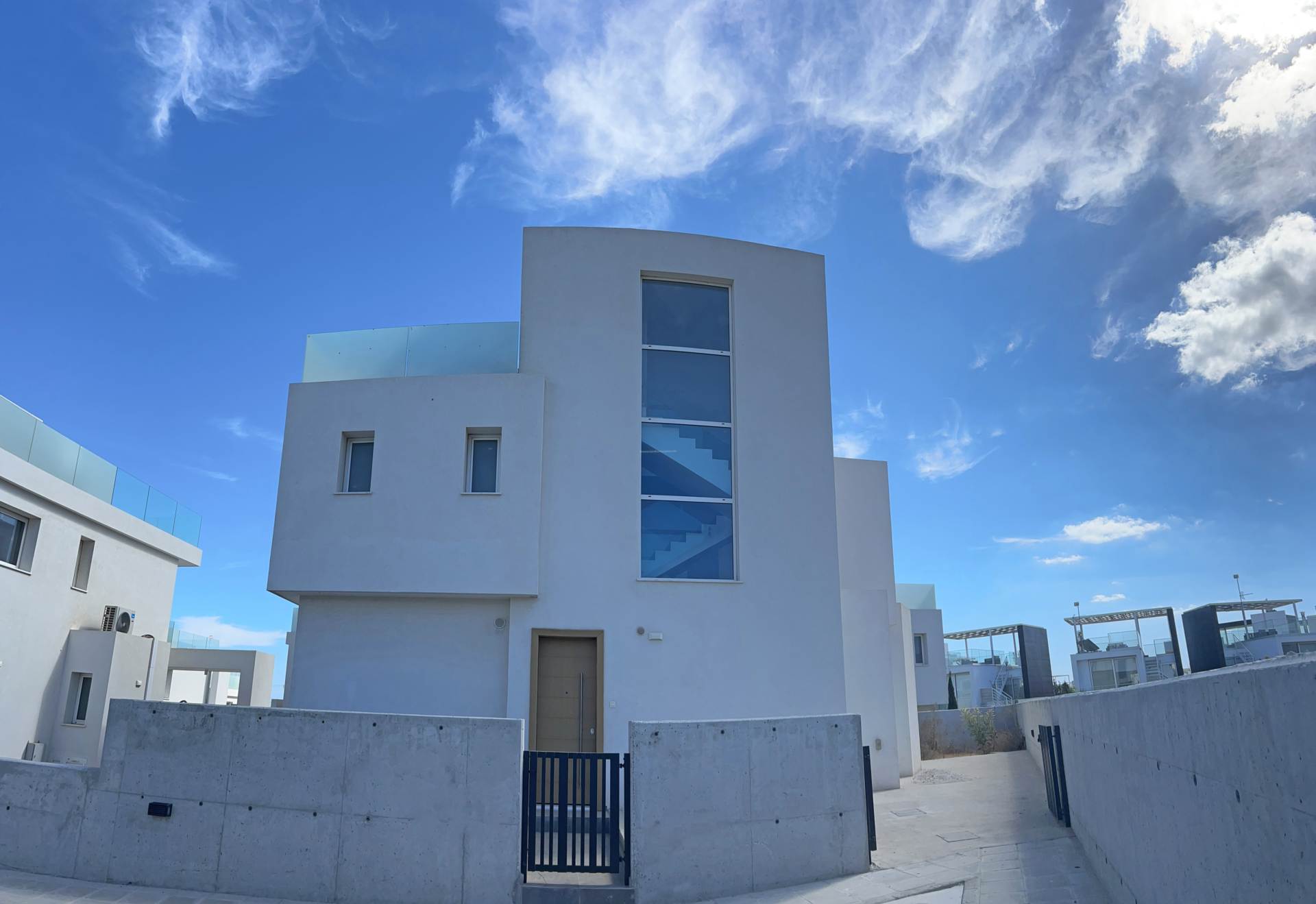 The 60m2 tiled roof terrace benefits has plenty of space for al fresco dining, lounging in the sunshine and offers an optional jacuzzi area. This is a fantastic opportunity to own a home just 600m to the Mediterranean sea on the coast of Cyprus. This new build property is offered for sale with covered parking, inviting mosaic tiled swimming pool, outdoor shower and sun terrace as well as a delightful wraparound style garden.
