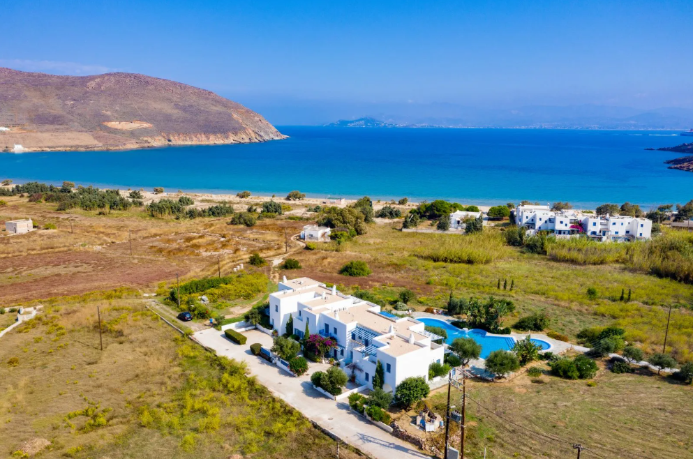 This beautiful villa is filled with natural light and enjoys uninterrupted views of the Aegean Sea. Located in the traditional fishing village of Molos, the property is part of an exclusive Cycladic-style development inspired by the architecture and serenity of the island. Residents benefit from direct access to a communal swimming pool, landscaped gardens, and inviting shared spaces designed for relaxation.