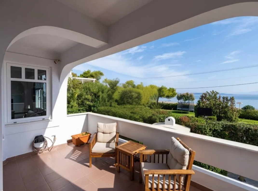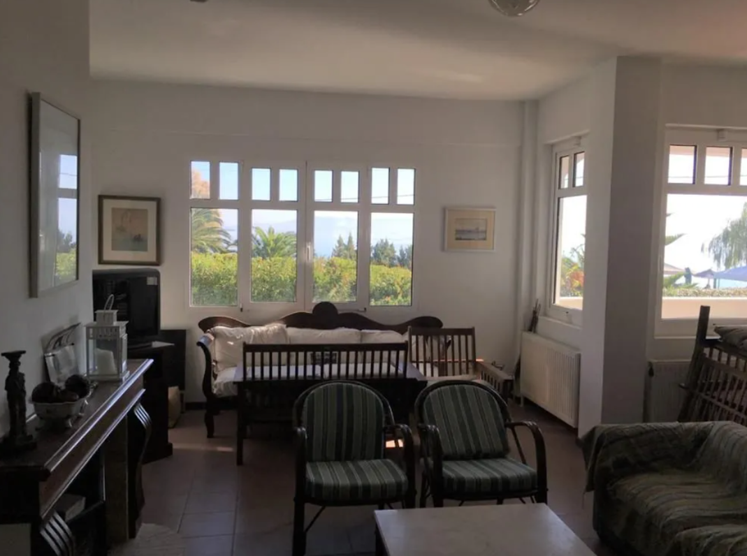 Exceptional 3-level detached villa just 10 meters from the beach, offering unobstructed views of the sea, mountains, and forest. The property consists of two independent residences (a ground floor apartment and an upper-level maisonette), making it ideal for large families, dual living, or short-term rental investment. Located in a quiet coastal area with easy access to the town center, airport, and Athens.