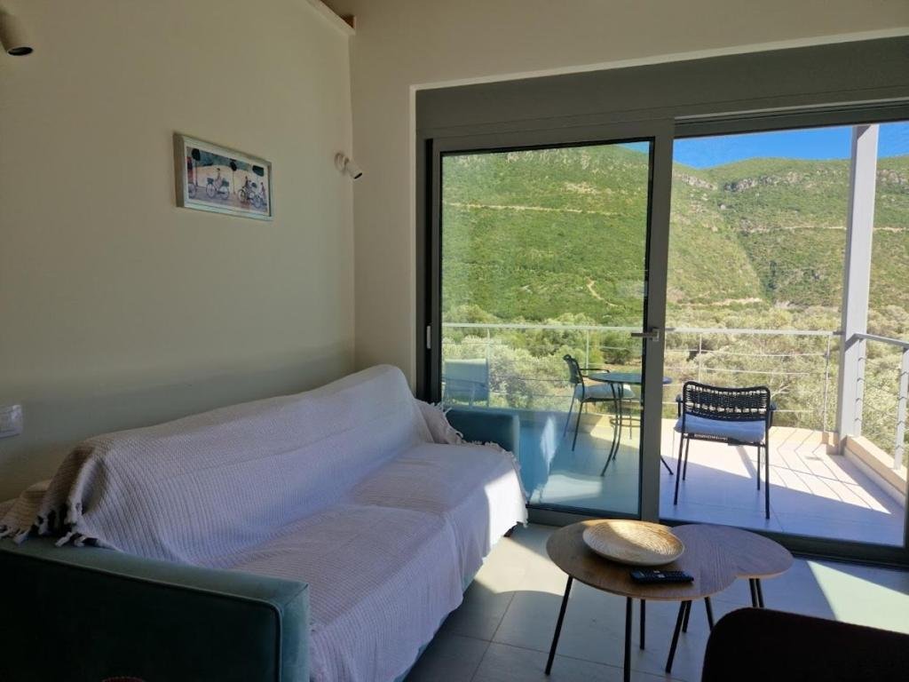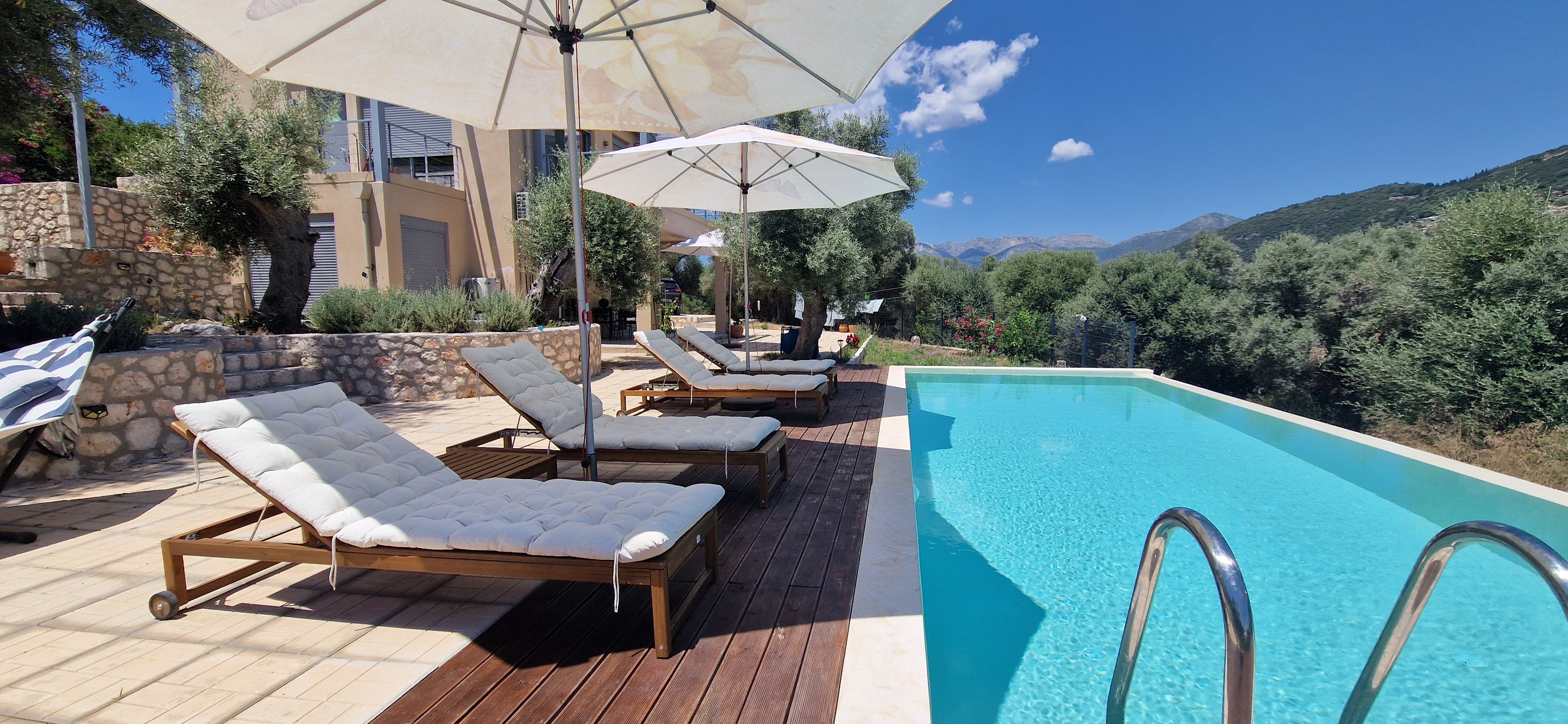 This beautiful villa is located in the serene southern part of Lefkada, between Evgiros village and Afteli Beach, overlooking the turquoise Ionian Sea and the uninhabited islands of Arkoudi and Atokos.