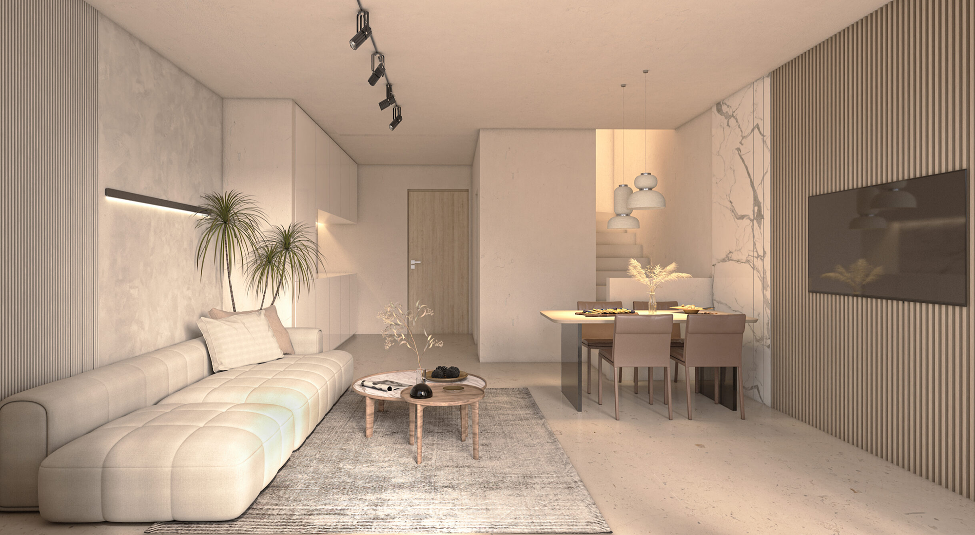 This beautifully arranged maisonette spans across three levels - ground floor, first floor, and attic and includes two bedrooms and three bathrooms (including one guest WC). The interior is enhanced by 16m² of balconies, a private garden, and a private pool, creating a seamless flow between indoor comfort and outdoor living.