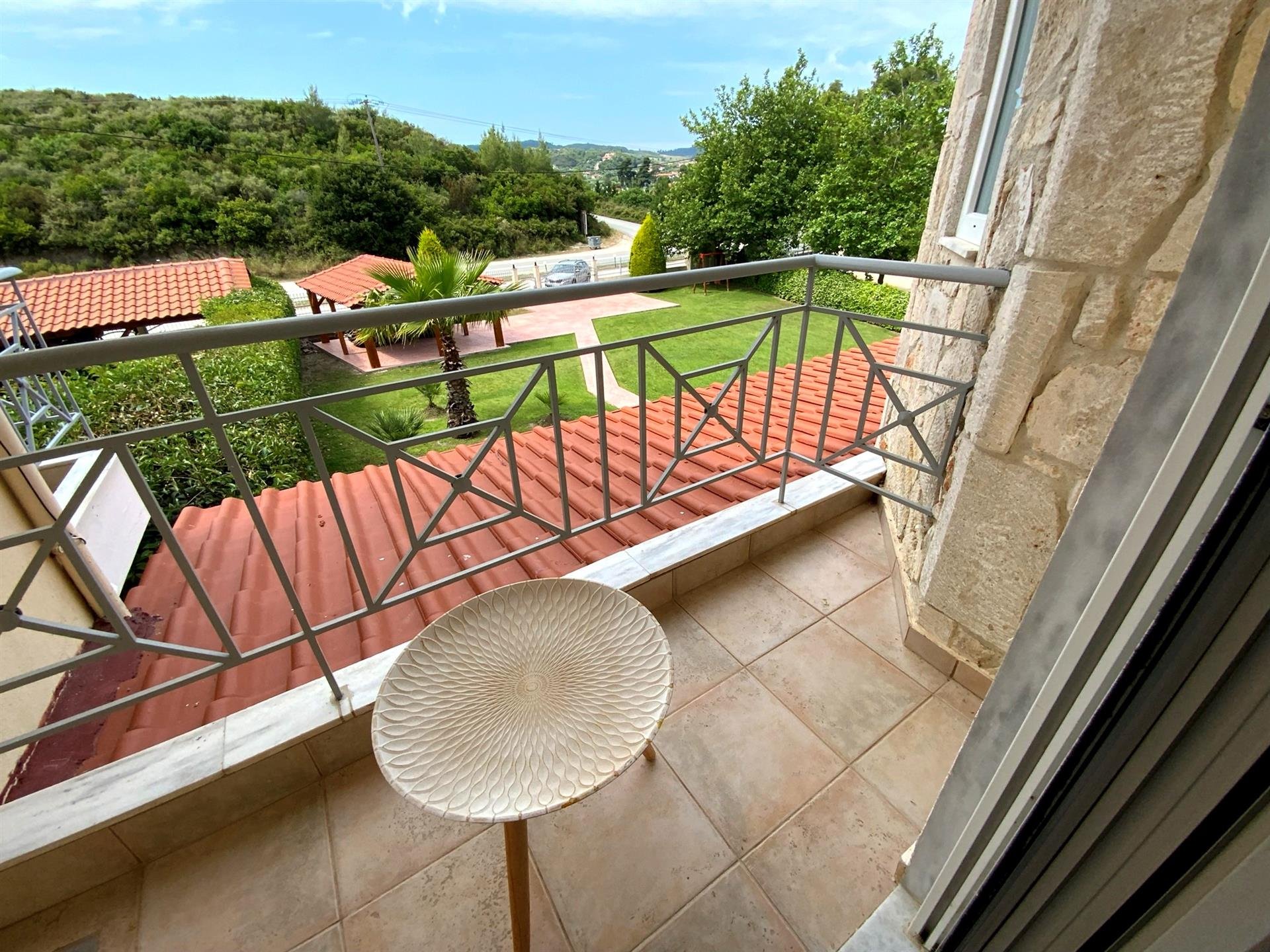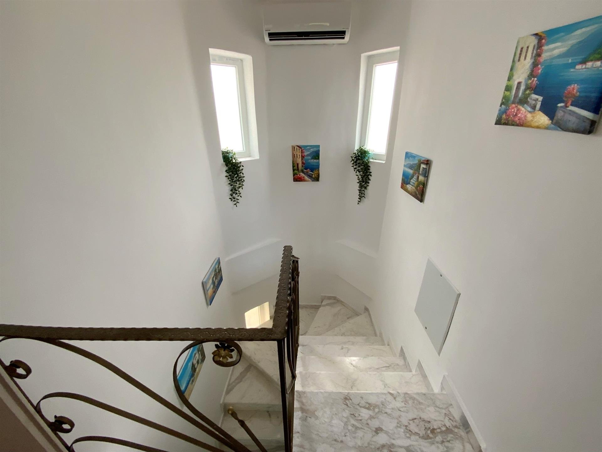 The first floor includes three bedrooms, all with access to a large balcony with beautiful sea views, and a shower room with W.C.