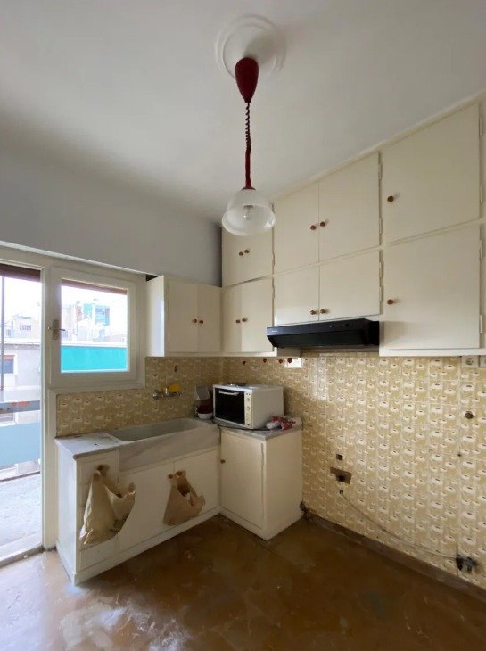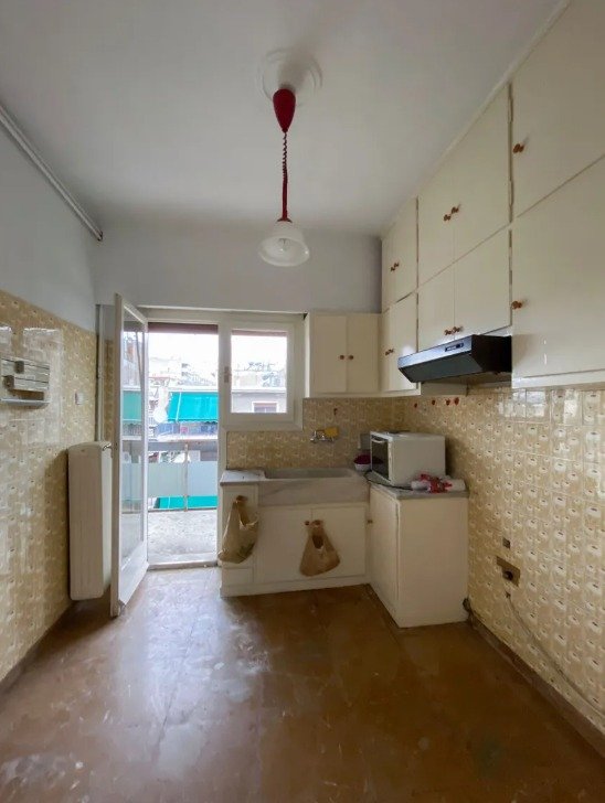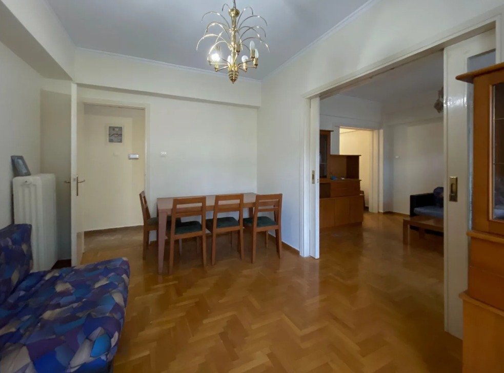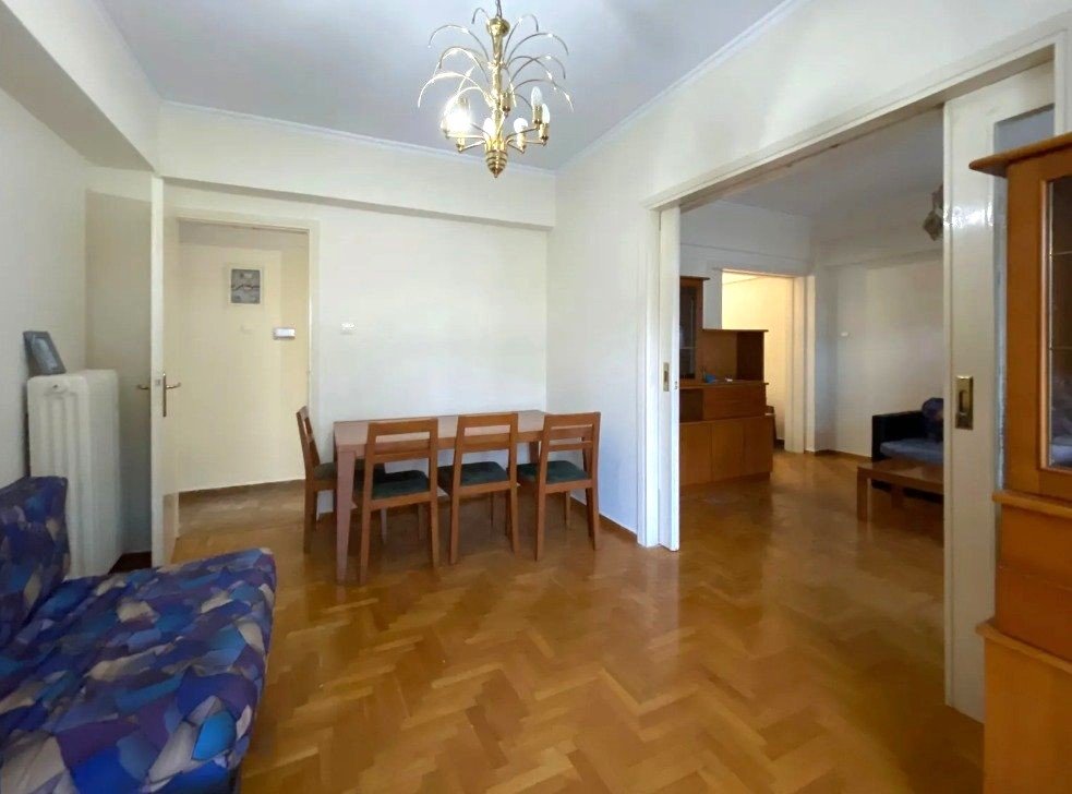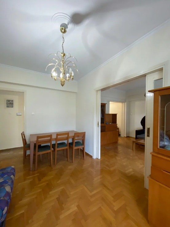 Located in a well-maintained 1970s building, this 91m² apartment on the 4th floor is now available for sale. It includes a spacious entrance hall, living room, dining area, two bedrooms with wardrobes, a separate kitchen, one bathroom, one WC, and a storage attic.