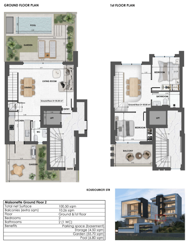 A modern 101 m² ground-floor residence featuring 2 bedrooms, 2 bathrooms, and exclusive use of a private garden and swimming pool, located in one of North Athens' most desirable neighborhoods.
