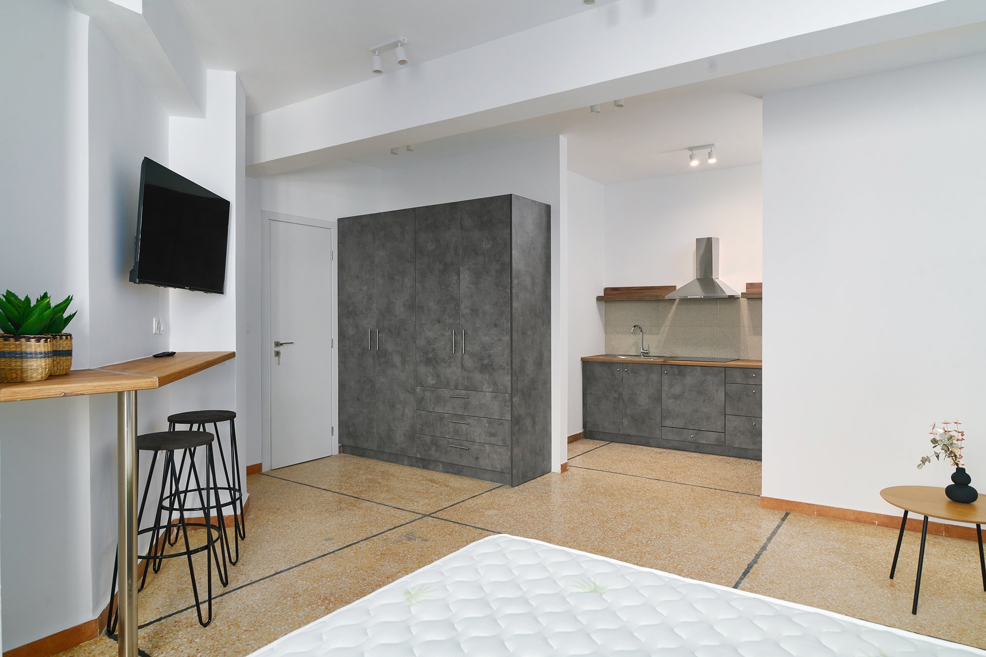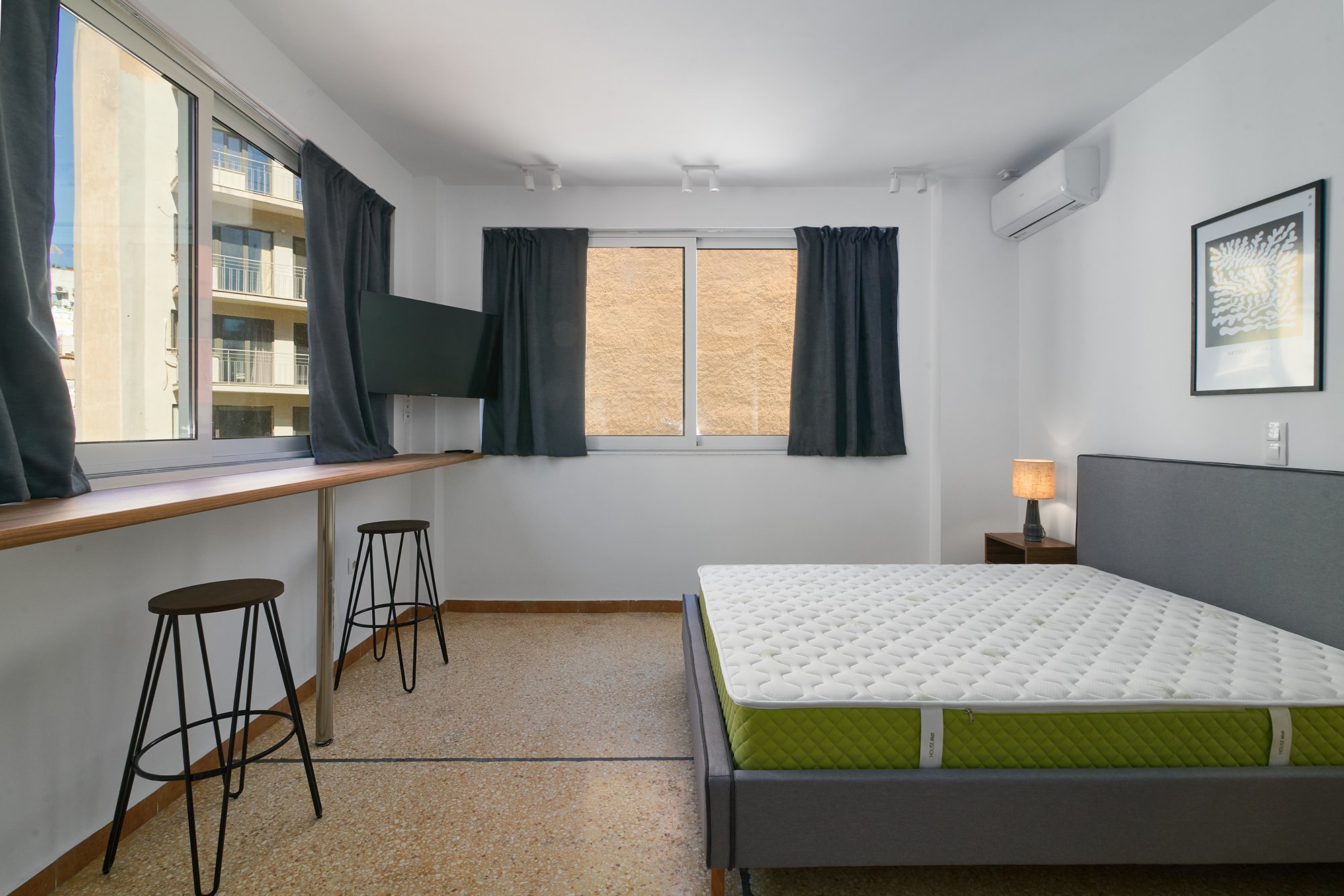 The apartment features a smart and functional layout, including two well-sized bedrooms, a bright living area, a fully equipped kitchen, and a modern bathroom. With stylish finishes and city views, it reflects the creative energy of its surroundings.