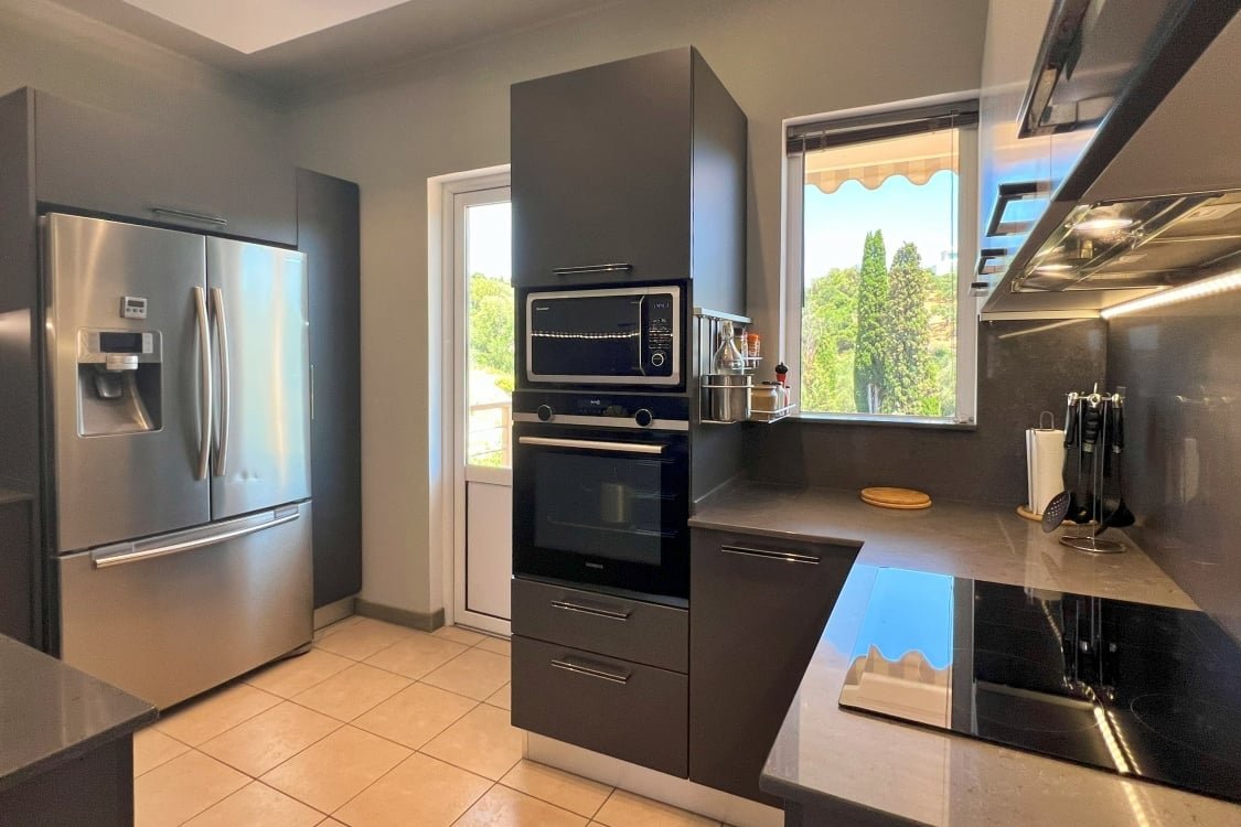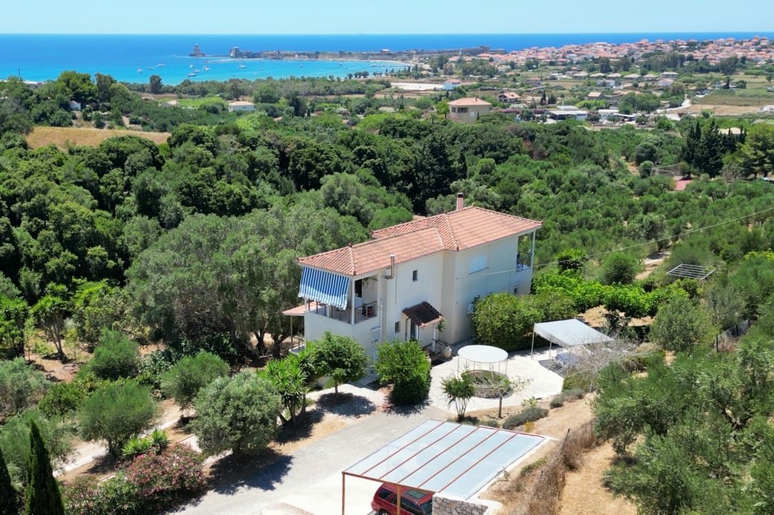 Positioned on an elevated plot just minutes from the coast, this elegant 2003-built villa captures breathtaking sea and sunset views stretching toward a historic coastal landmark. Set on a private, gated 4,000 m² estate and partially renovated in 2023, it combines tranquility, functionality, and Mediterranean charm.