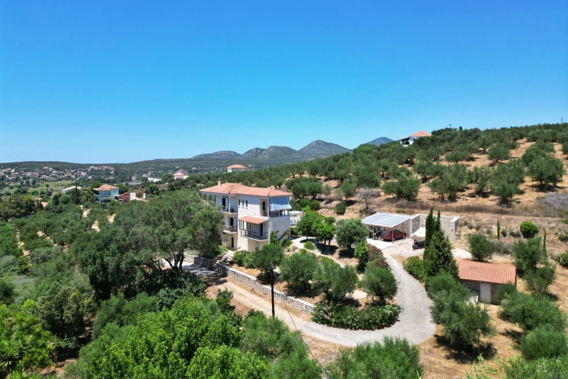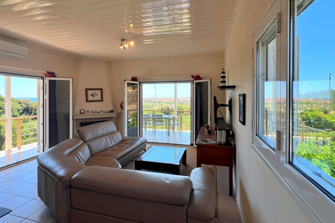 Positioned on an elevated plot just minutes from the coast, this elegant 2003-built villa captures breathtaking sea and sunset views stretching toward a historic coastal landmark. Set on a private, gated 4,000 m² estate and partially renovated in 2023, it combines tranquility, functionality, and Mediterranean charm.