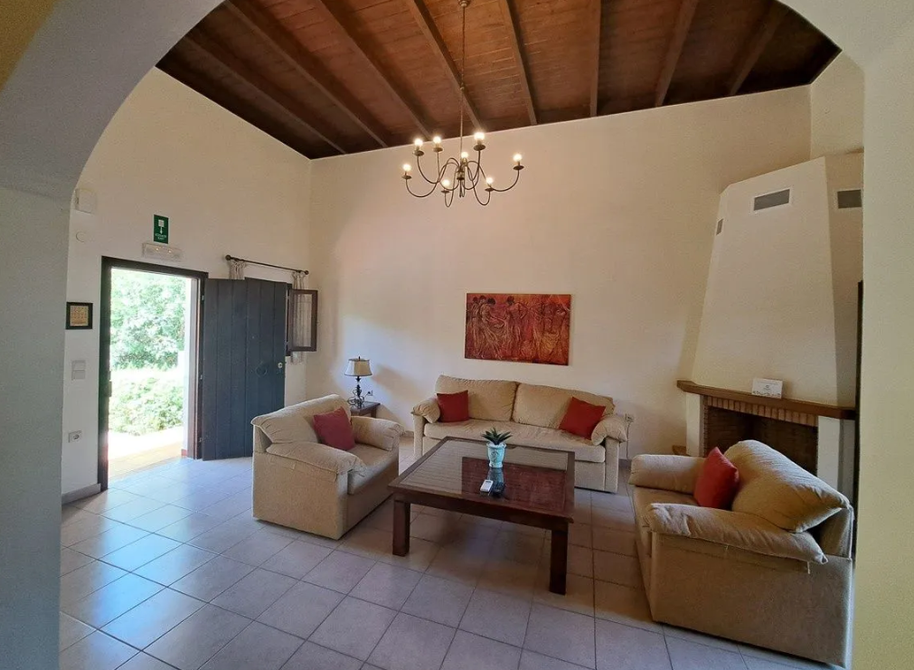 Set on a generous 1,354 m² private plot, the 114 m² residence spans two levels connected by an internal staircase. The layout includes a cozy living area with fireplace, a fully equipped kitchen, two comfortable bedrooms, and three modern bathrooms.