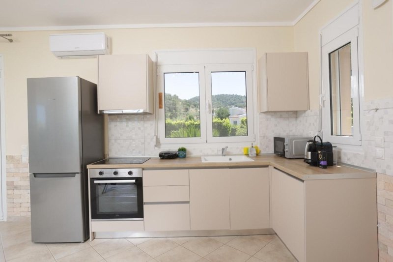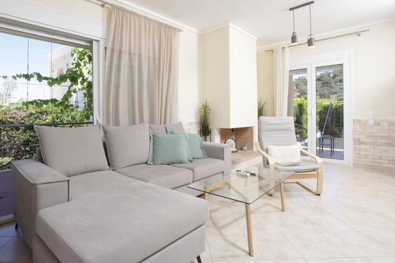 Built in 2011, the villa spans 125 m² across three comfortable levels. From the spacious balcony and outdoor terraces, you can enjoy the sunrise over the Toroneos Gulf, the shifting colors of the sea, and the peaceful natural landscape that surrounds the home.