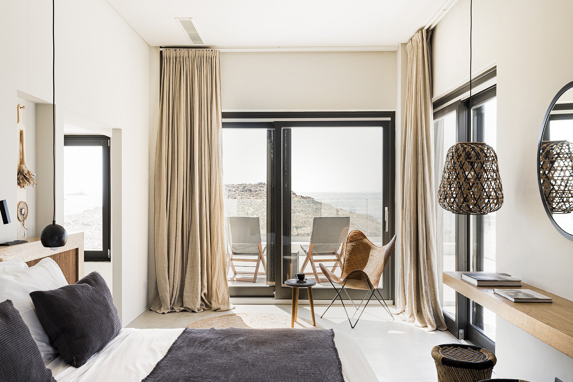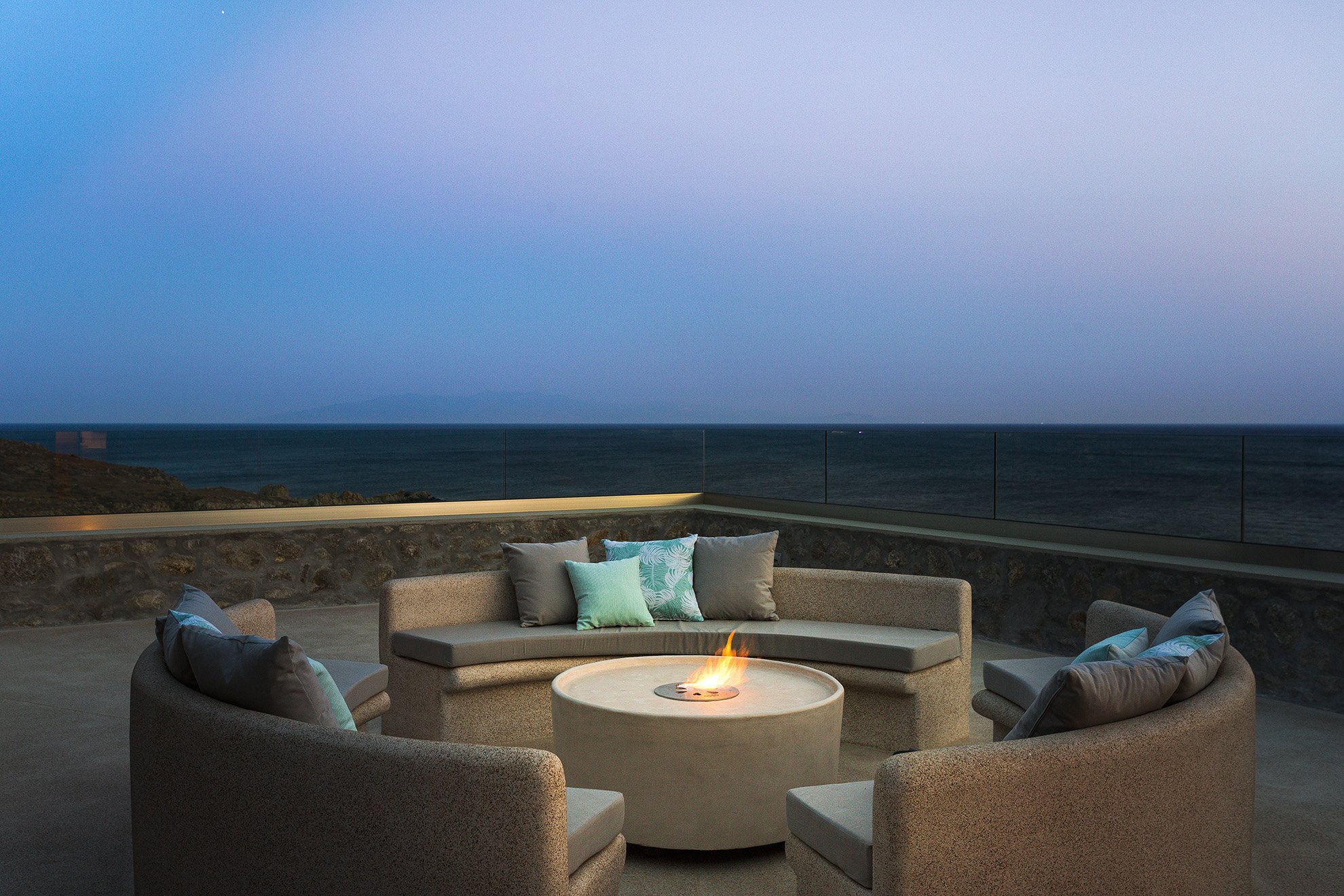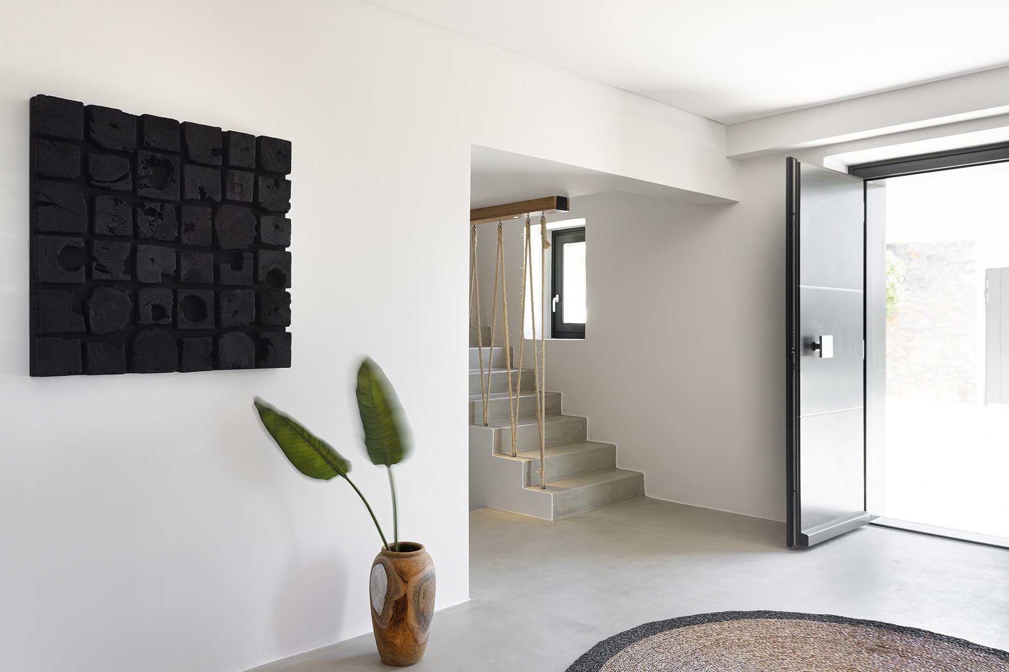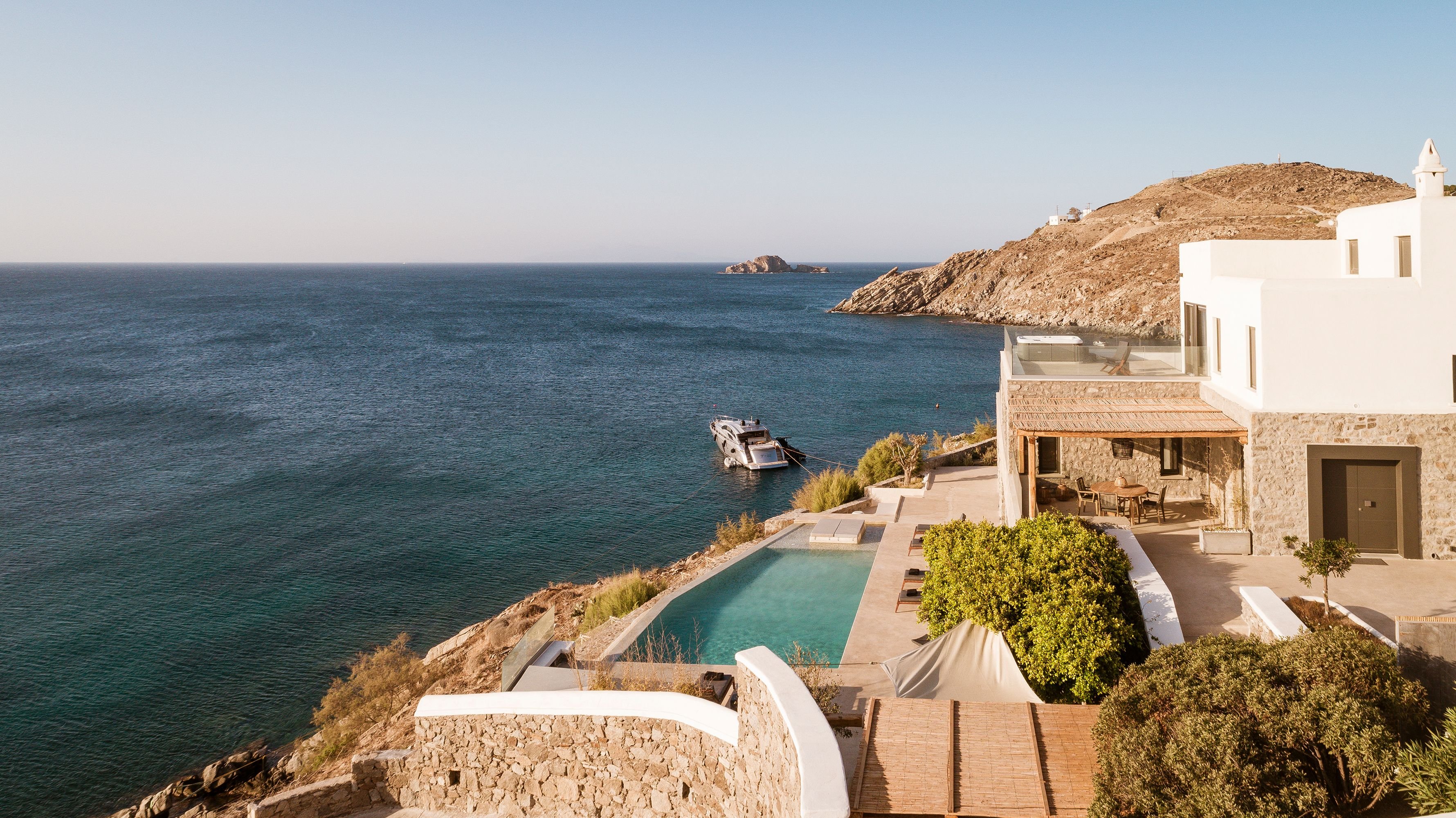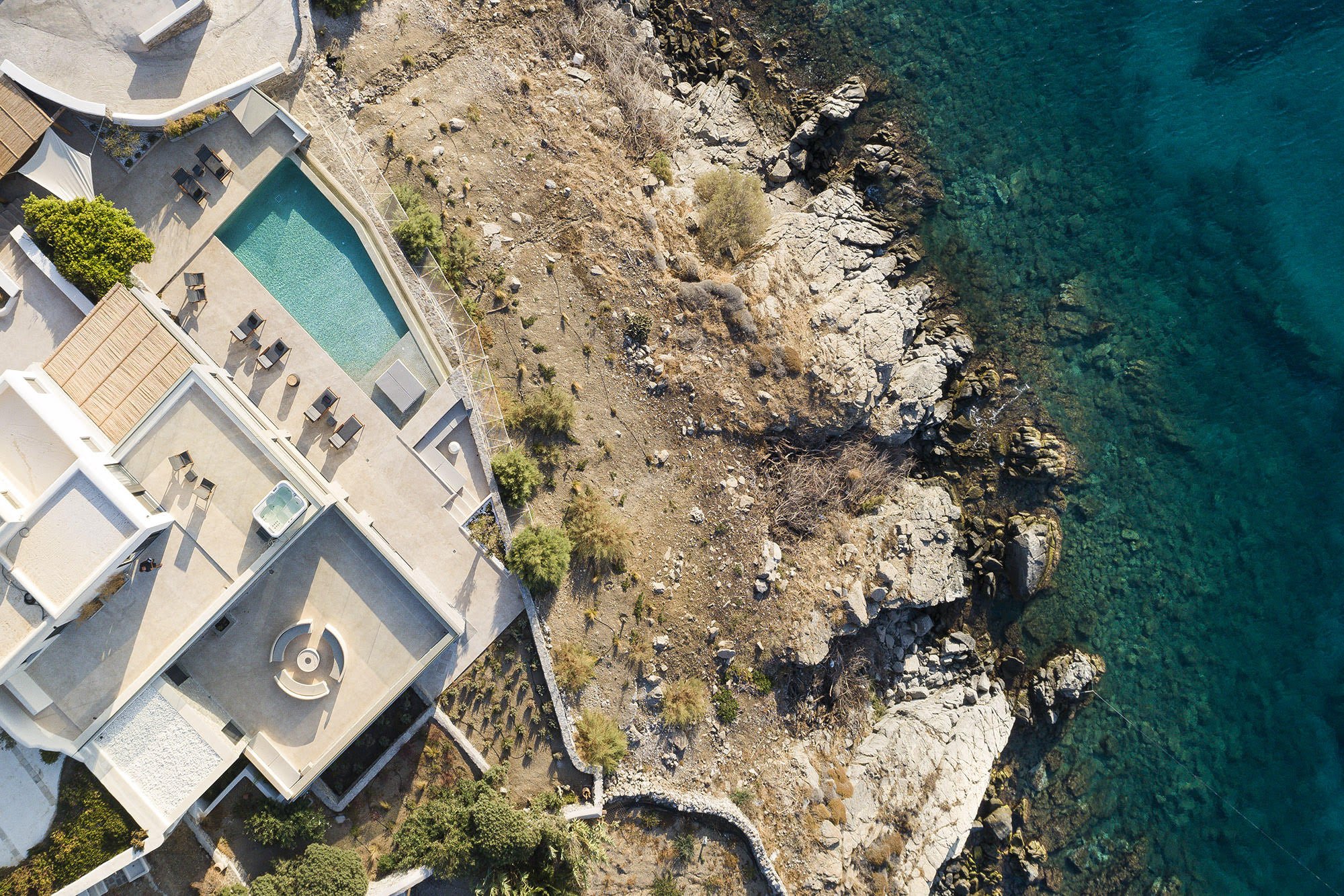 Renovated in 2019, the villa extends over 510 m² across three levels, designed with timeless elegance and furnished with luxury décor. Its panoramic 180° views capture the deep blue of the Aegean, with vistas reaching Paros and Naxos. Outdoor living is elevated with a private infinity swimming pool, a fire pit, and a vast terrace with jacuzzi - the perfect setting for relaxation or entertaining.