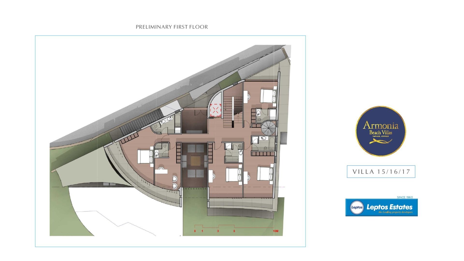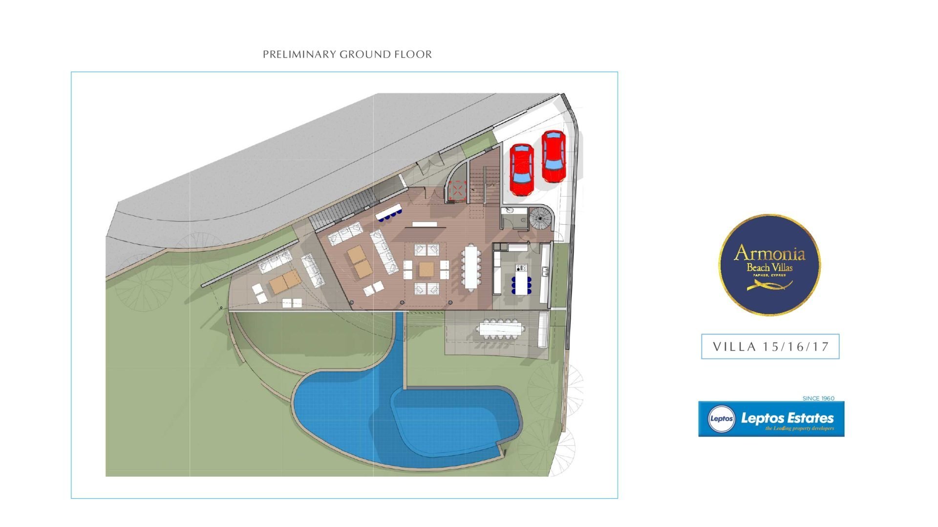 Armonia Beach Villa 15/16/17 is a stunning 10-bedroom, 11-bathroom Villa set in one of the most desirable locations of Paphos. Located in a large plot with private garden all around and large space for a swimming pool. The site is situated at a quiet and picturesque bay, some three miles North of Paphos, past Kissonerga Village. Armonia Beach Villas, is a brand new project by Leptos Estates superbly located on the coastline in a pristine area between Paphos Harbour and the picturesque Coral Bay Beach. The Villas are built to the highest standards featuring private pools, large areas of landscaped gardens, BBQ areas, large verandahs with outdoor living areas, modern architectural designs with the latest technology quality finishes, spacious parking spaces and many more.
