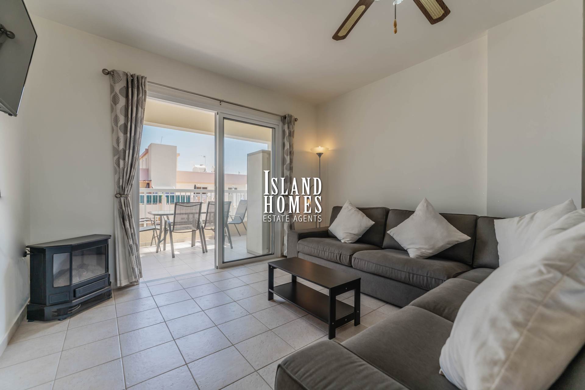 Set on a well maintained complex, just a few minutes walk from the village centre, this 2nd floor apartment, accessible by lift or stairs, has a private entrance via an external corridor. The cosy interior has been well looked after, is beautifully presented and comprises open plan kitchen, dining and living area, 2 double bedrooms and a family bathroom. The 14m2 balcony is accessible from both the master bedroom and the living area, allowing plenty of natural light to flood into the property. The veranda has views of the communal swimming pool and surrounding fields and is a great space for dining al fresco.